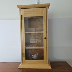 Wooden Glass Door Curio 3 Shelf Trinket Wall Hanging Cabinet with Original Hanging Hardware. Measures 21"Hx11"Lx8.5"W.