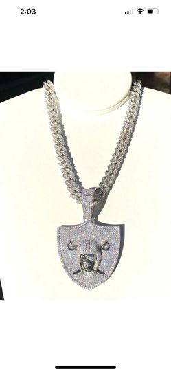 Men 14k White Gold Moissanite Cuban Chain with Raider Medallion Miami Cuben Chain Pendant$300Bakersfield, CA