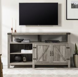 58” Farmhouse Barn Door TV Stand Console Gray Wash Wood Entertainment Center$125Spring Valley, CA