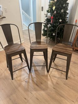 Set of 3 Industrial Bar Stools – Metal Frame + Wood Seat (Tolix Style)$100Heathrow, FL