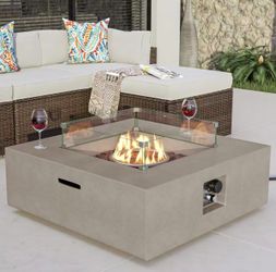 COSIEST Square Outdoor Sandstone Propane Fire Pit w Wind Guard, CSA Certified, 50,000 BTU Stainless Steel Burner, 35-inch, Free Lava Rocks and Rain Co$325Norco, CA