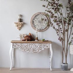 Brand New Shabby Chic White Wood Carved Slim Rectangle Farmhouse Style Table$100Bremerton, WA