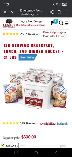 BNIP Legacy Premium Survival Food 120 Serving Breakfast Lunch Dinner 31LB Bucket