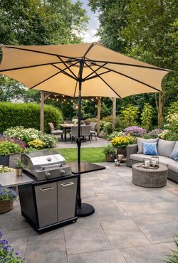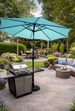 New in Box Patio Umbrella 9'×9' Available Color Tan And Navy Blue$40Carson, CA