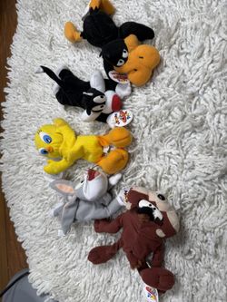 These are vintage Looney Tunes bean bag plush toys, likely produced in 1997 by Warner Brothers. 5pcs Still with tag Has flaws on tweety bird as seen$20Lakewood, WA