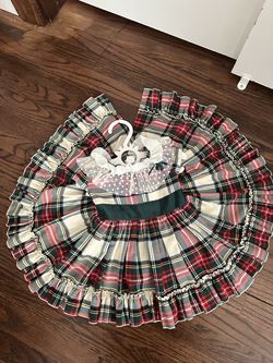 Baby Girls Christmas tartan plaid dress cotton & lace collar ruffles Sz 80 12months length 15” armpit to armpit 11*2”$10New Castle, DE