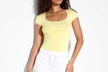 Yellow Lace Trimmed Short Sleeve Top $5Hasbrouck Heights, NJ