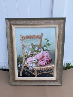 Framed art painting of flowered hat$5North Massapequa, NY