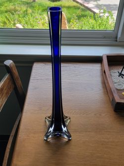 Gorgeous Designs Vintage Cobalt Blue And Clear Glass Soliflore Vase Tall Eiffel Tower$25Los Altos, CA