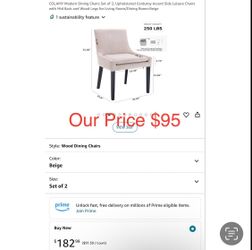 COLAMY Modern Dining Chairs Set of 2, Upholstered Corduroy Accent Side Leisure Chairs with Mid Back and Wood Legs for Living Room/Dining Room-Beige$80Durham, NC
