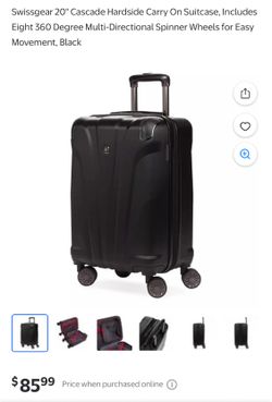 Swissgear 20" Cascade Hardside Carry On Suitcase, Includes Eight 360 Degree Multi-Directional Spinner Wheels for Easy Movement, Black$40Durham, NC