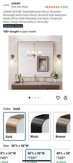 LOAAO 36”X36” Gold Bathroom Mirror, Rounded Rectangle Gold Frame Mirror, Brushed Gold Bathroom Vanity Mirror Wall-Mounted, Anti-Rust, Tempered Glass, $85Durham, NC