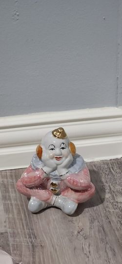 Vintage Lusterware Seated Ceramic Clown Figurine Pink and Blue
