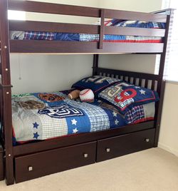 Full bunk bed cherry wood With One Side Table $420Tracy, CA