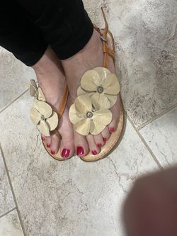Born Cream/Tan Floor Embellish Leather Sandals Size 8$25Newport Beach, CA
