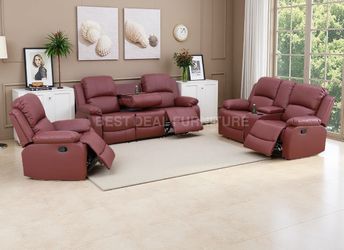 Red faux leather Reclining Couch 3-Pc Set — Sofa • Loveseat • Chair$1,200Seattle, WA