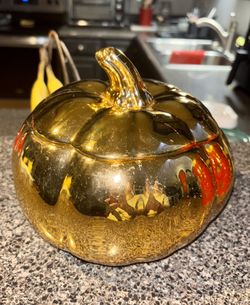 Mirrored Pumpkin Bowl With Lid Dark Gold$20Hardy, VA
