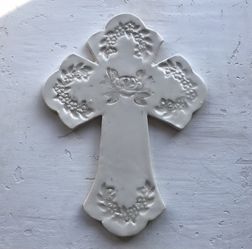 White Ceramic Wall Cross Handmade Handcarved $15Moreno Valley, CA