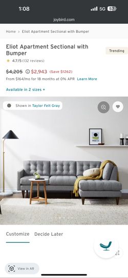 Free Delivery - Eliot Apartment Sectional Sofa with Bumper$975San Jose, CA