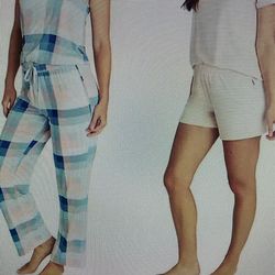 Eddie Bauer Women’s 4 Pz Pajama Set Teal Squares Size M$19El Paso, TX