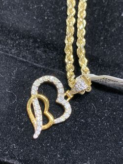 Solid Gold And Natural Diamond Heart Pendant With Rope Chain$380Los Angeles, CA