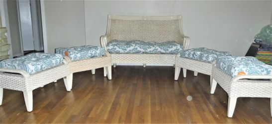 Pier 1 Ivory Wicker Sofa/Settee and Ottoman Patio Set ~ ranjacuj$725Stockton, CA