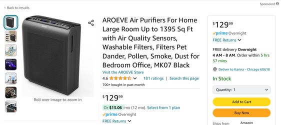 AROEVE Air Purifier MK07$30Bedford Park, IL