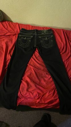 Brand New, Size 33, Never Worn Black Relaxed Rocco True Religion Jeans With White Stitching $160Salinas, CA