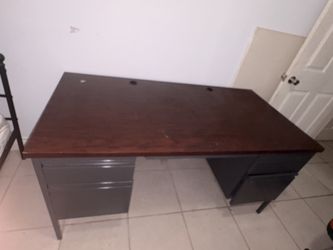 Old school medal desk with brown wooden top$27Corp Christi, TX