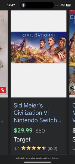 Sid Meier's Civilization VI - Nintendo Switch$20Chula Vista, CA