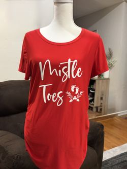 Time And Tru Maternity Mistle Toes Red Women's Holiday Tee - Sz Med$15Houston, TX