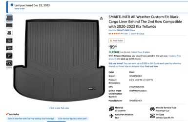 All Weather Custom Fit Black Cargo Liner 2020-2023 Kia Telluride$30Meriden, CT