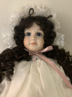 VINTAGE PORCELAIN BABYDOLL W/ BEAUTIFUL WHITE OUTFIT & LONG DARK HAIR $60Kentfield, CA