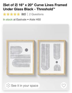 (Set of 2) 16" x 20" Curve Lines Framed Under Glass Black - Threshold™$40Riverside, CA