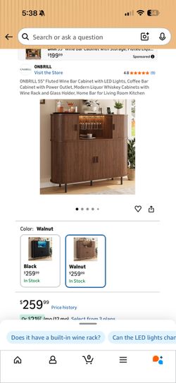 55" Fluted Wine Bar Cabinet with LED Lights, Coffee Bar Cabinet with Power Outlet, Modern Liquor Whiskey Cabinets with Wine Rack and Glass Holder, Hom$190Bakersfield, CA
