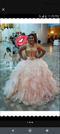 Peach Organza Quinceanera Dress, Size 16$700Houston, TX