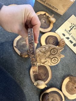 New Set Of 8 Wood Coasters Tree Carved Animals Owl Mouse Whale Porcupine Anthropologie$20Mercer Island, WA