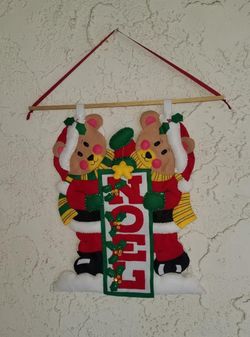 Bucilla Holiday Wishes Bear Felt Applique Christmas Decor Handmade Appliqué , 16 3/4 across 20 1/2 long Stick is 20 3/4$30Garden Grove, CA