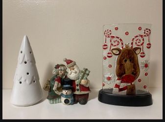 Lot Of. 3 Candles Christmas Snowman Joy Rain deer Man Woman Carolers Lights Up $10Cypress, CA