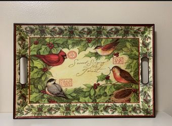 Large Christmas Tray Birds Yuletide Holly Leaves Green Red $10Garden Grove, CA