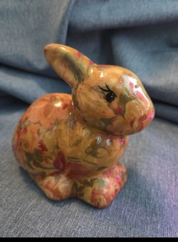 Vtg Ceramic Victorian Rabbit Figurine Floral Decoupage Look 6"L X 5.75"H X 4"W Easter Sunday statue bunny$15Garden Grove, CA