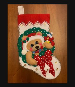 HAND MADE EMBROIDERED FELT CHRISTMAS STOCKING FINISHED ORNAMENT BEAR FINISHED NEW, FULLY LINED. Sock$30Garden Grove, CA