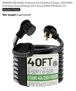 POWGRN 40ft Welder Extension Cord Outdoor 8 Gauge, 250V NEMA 6-50 Heavy Duty Welding Cord 3 Prong, 8AWG STW Black, ETL$70Merced, CA