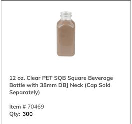 12 oz. Clear PET SQB Square Beverage Bottle with 38mm DBJ Neck and Cap - 295 available$130Elk Grove Village, IL