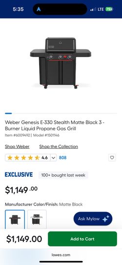 Weber Genesis E-330 Stealth Matte Black 3 -Burner Liquid Propane Gas Grill$900Commerce, GA