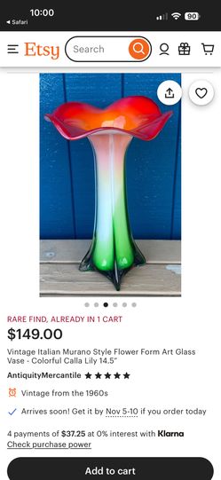 Vintage Murano Style Lily Vase $100Fort Lauderdale, FL