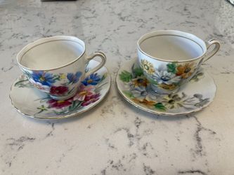 Two Kasuga Ware Flower Of The Month Teacups And Saucers$3Lake Forest, CA