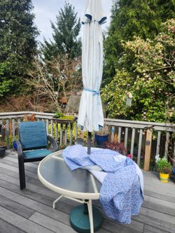 Set of Outdoor Patio Chairs Table and Umbrella$100Portland, OR
