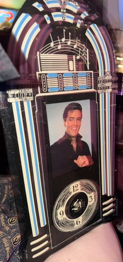 Preowned Elvis Presley Clock Lacquered Juke Box, Clock Stopped Working.and missing the hands and small chip on top as shown in last photo . But you ca$5Las Vegas, NV