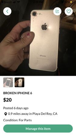 IPHONE 6 (BROKEN)$20Playa Del Rey, CA